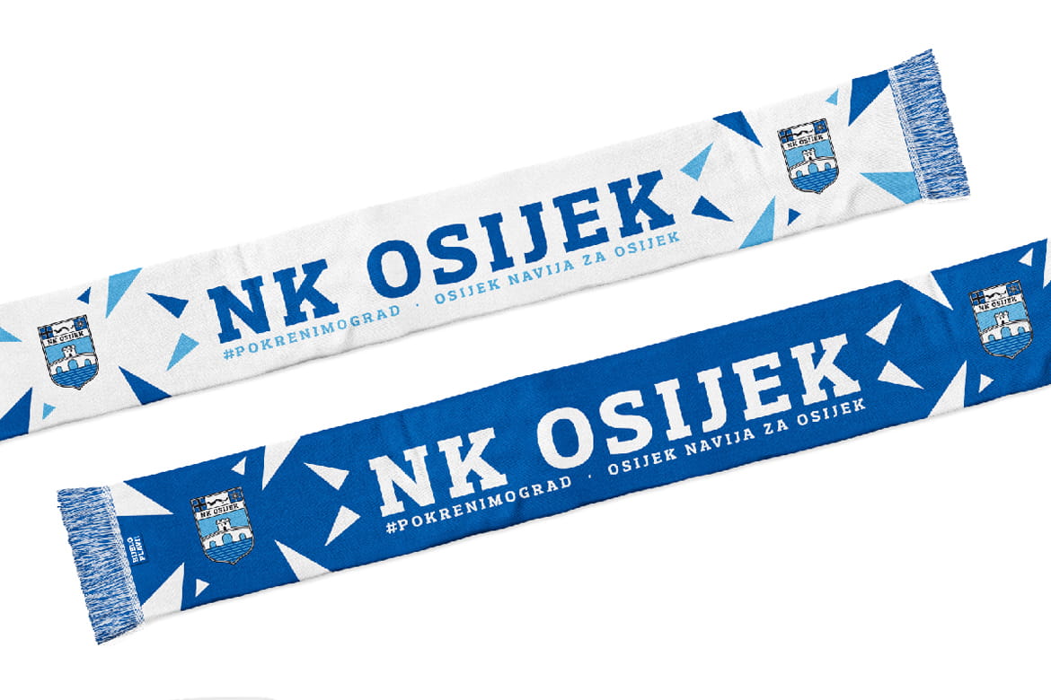 FC Osijek Tringles are geometrical elements in the colors of the club. Triangles as geometric figures give dynamics and necessary boost. Symbolically, they represent the hustle and the sports, as well as masculinity and strength. The use of an isosceles triangle gives the impression of danger, which would emphasize the fanatical fight of the players in the matches, intimidate the opponent, but also encourage the citizens and fans to unite and cheer on their team. Call to action slogan and a hashtag have been created to announce club events, promotions, invitations, matches, to stir the hype among the members and supporters, and to encourage the citizens of Osijek to unite and cheer on their local club. For the purpose of promotion and sales activities of the official Club’s souvenirs, it was logical to design an original name of the Club’s shops and the brand. In the early 70s, the official Club colors became white and blue, which are also the colors of the City of Osijek. Since then, the white and blue color combination lives in the coat of arms, in the name, in the stadium, in the songs… It represents an important part of the Club’s identity. Precisely because of this reason, we suggested the most logical brand name, namely "Bijelo Plavi" (Croatian for “White and Blue”). In addition to the brand name, to official souvenir shop branding, and the development of a complete range of souvenirs, the name "Bijelo Plavi" also offers excellent opportunities for development of the brand architecture. The name "Bijelo Plavi" can be accompanied by the words of various actions, products or services, whose functions serve as additional brand promotion and recognition of the club. “Bijelo Plavi Klub” (“White and Blue Club”), “Bijelo Plavi Član” (“White and Blue Member”), “Bijelo Plavi Dan” (“White and Blue Day”)... The graphic element of a triangle that was used in the redesign of the visual identity, has also been intertwined in the design of the brand logo, within the free space between the two letters. The triangle element completes the story of FC Osijek’s identity, and balances the free space between the letters "LO" and "LA". The logo of the official souvenir shop was treated as an exclamation, which it will ultimately become when the brand comes to life. The silhouette of FC Osijek’s coat of arms was used as a further the link with the club and its identity within the form of an exclamation point.
